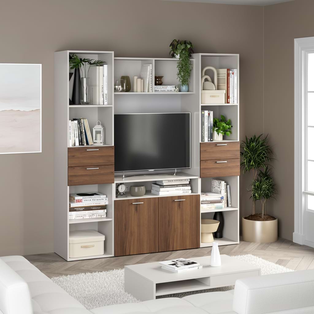 Tamos/Mobila LIVING/Biblioteca Living ARONA A 180, A42, H195, 2U4S, Alb Portelan, Nuc Warmia