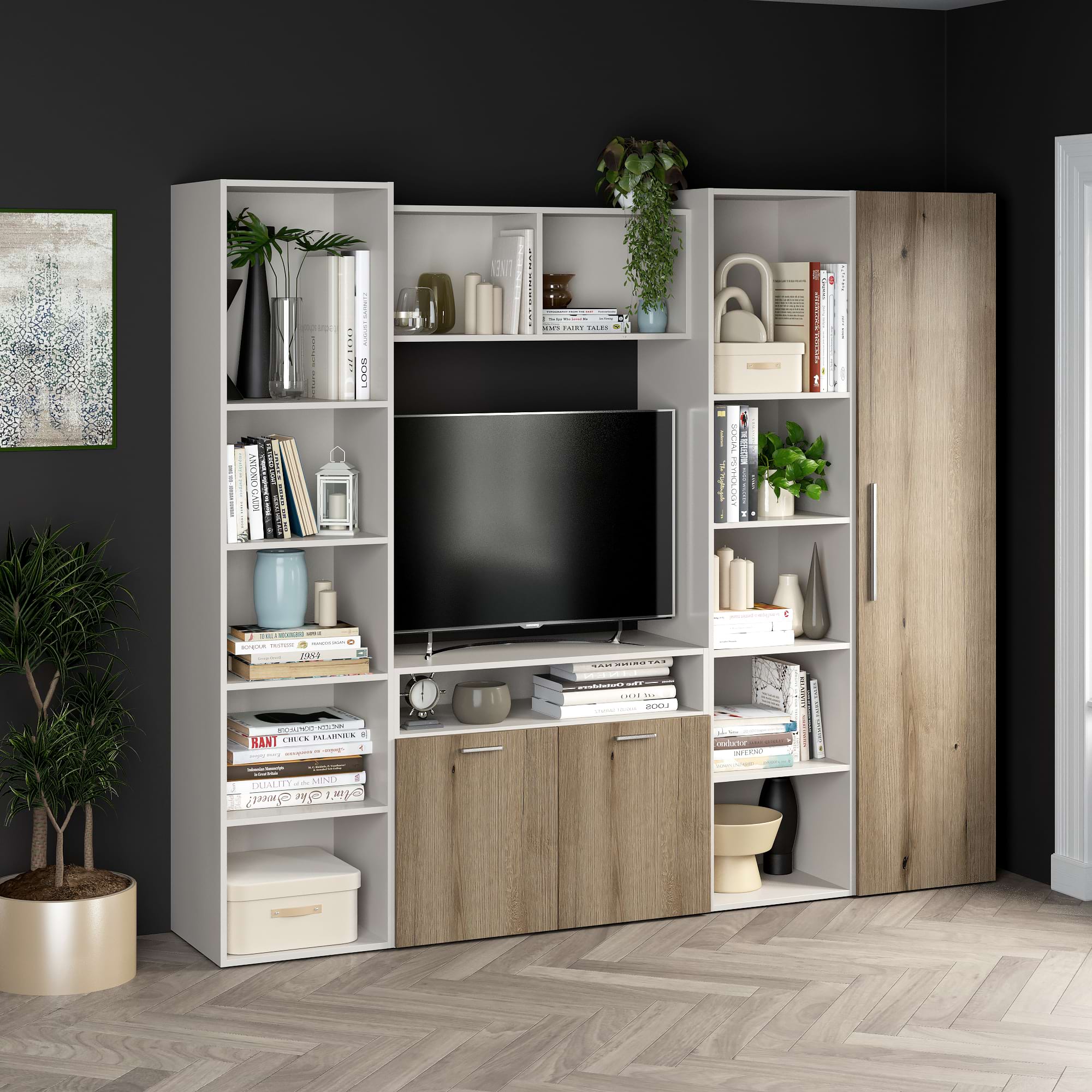 Tamos/Mobila LIVING/Biblioteca Living ARONA A 225, A42, H195, 3U, Alb Portelan, Stejar