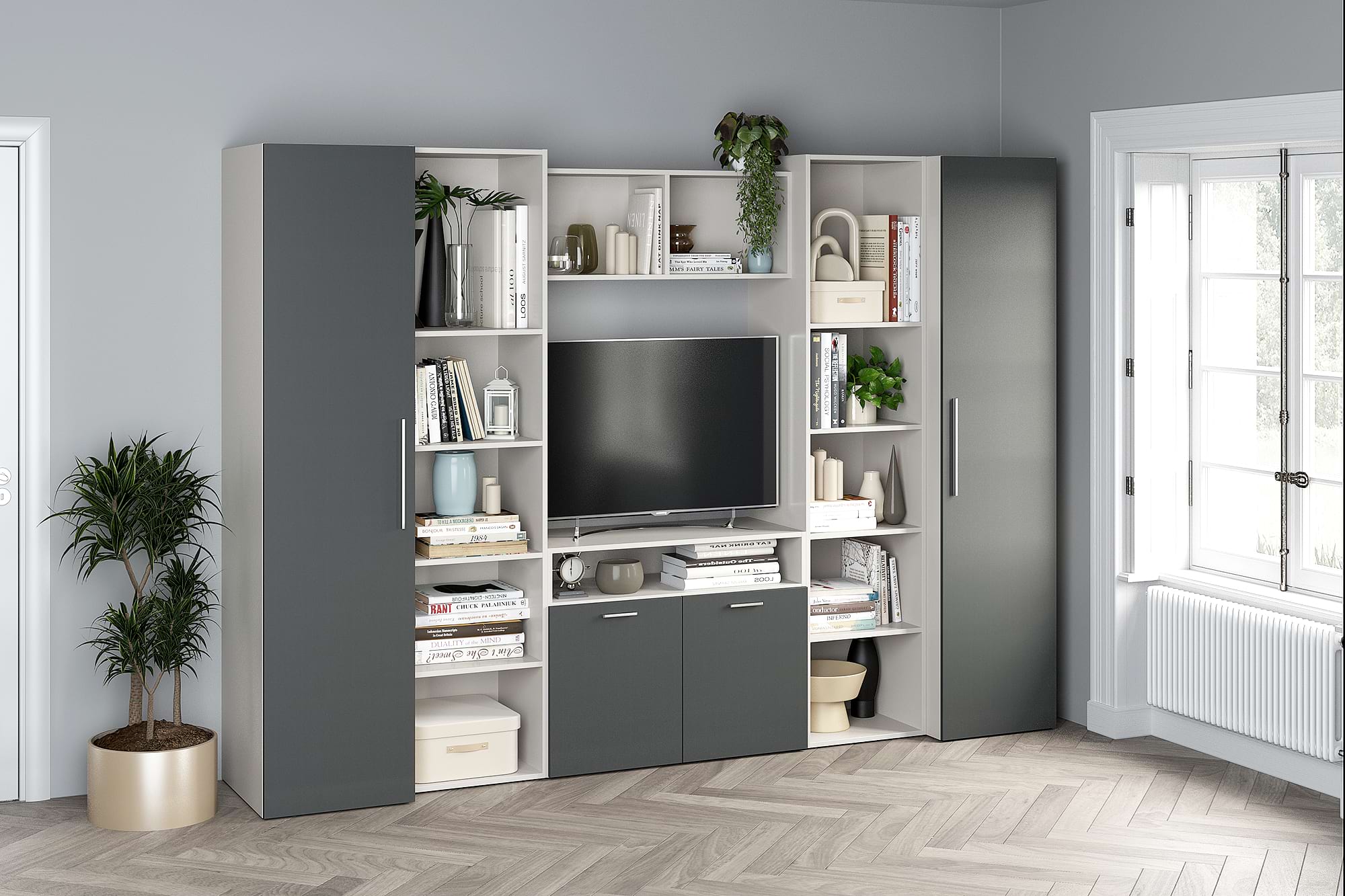 Tamos/Mobila LIVING/Biblioteca Living ARONA A 270, A50, H195, 4U, Alb Portelan, Antracit