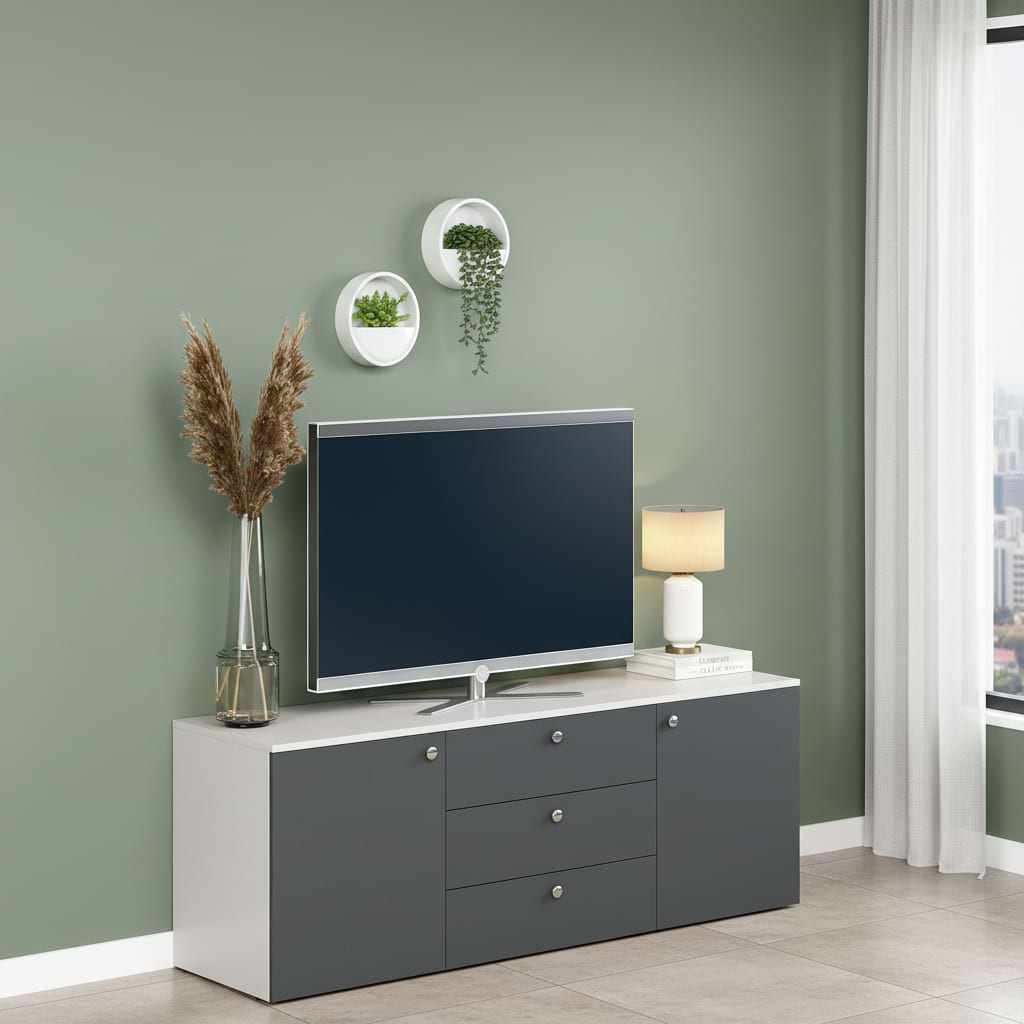 Construit din materiale de calitate superioară și echipat cu feronerie Hafele Germania, Comoda ARONA 150, A42, H57, 2U3S, Alb Portelan, Antracit asigură o utilizare sigură, silențioasă și durabilă în timp.