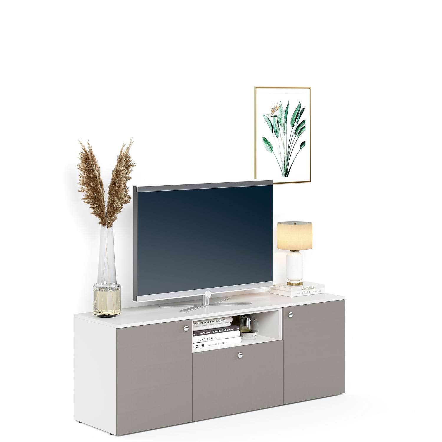 Comoda ARONA 150, A42, H57, 3U, Alb Portelan, Gri Piatra