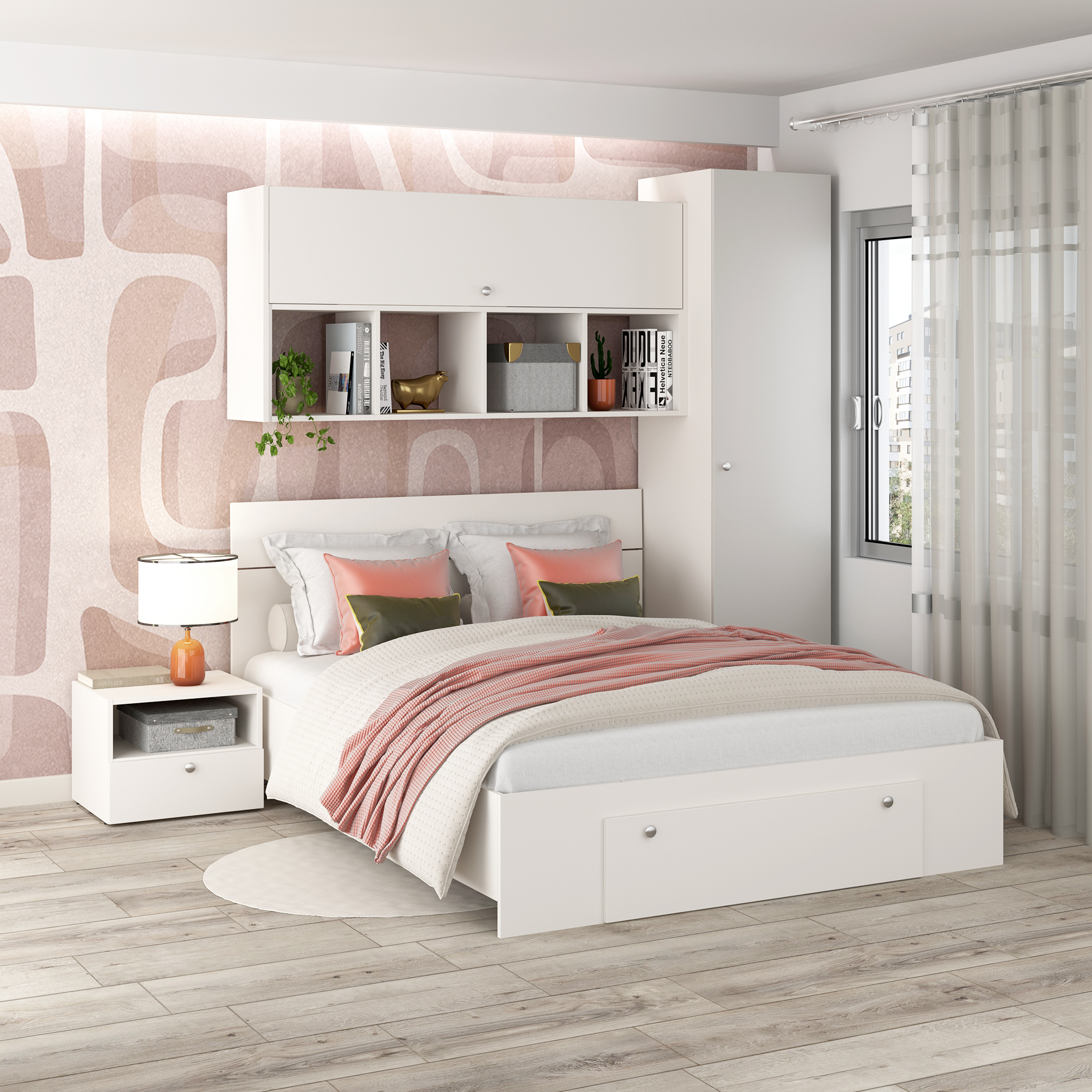 Dormitorul ARONA 2, parte din colecția modulară ARONA, este un ansamblu de mobilier cu funcționalitate maxima in spatiu restrans si design modern, fiind ideal pentru camerele compacte.