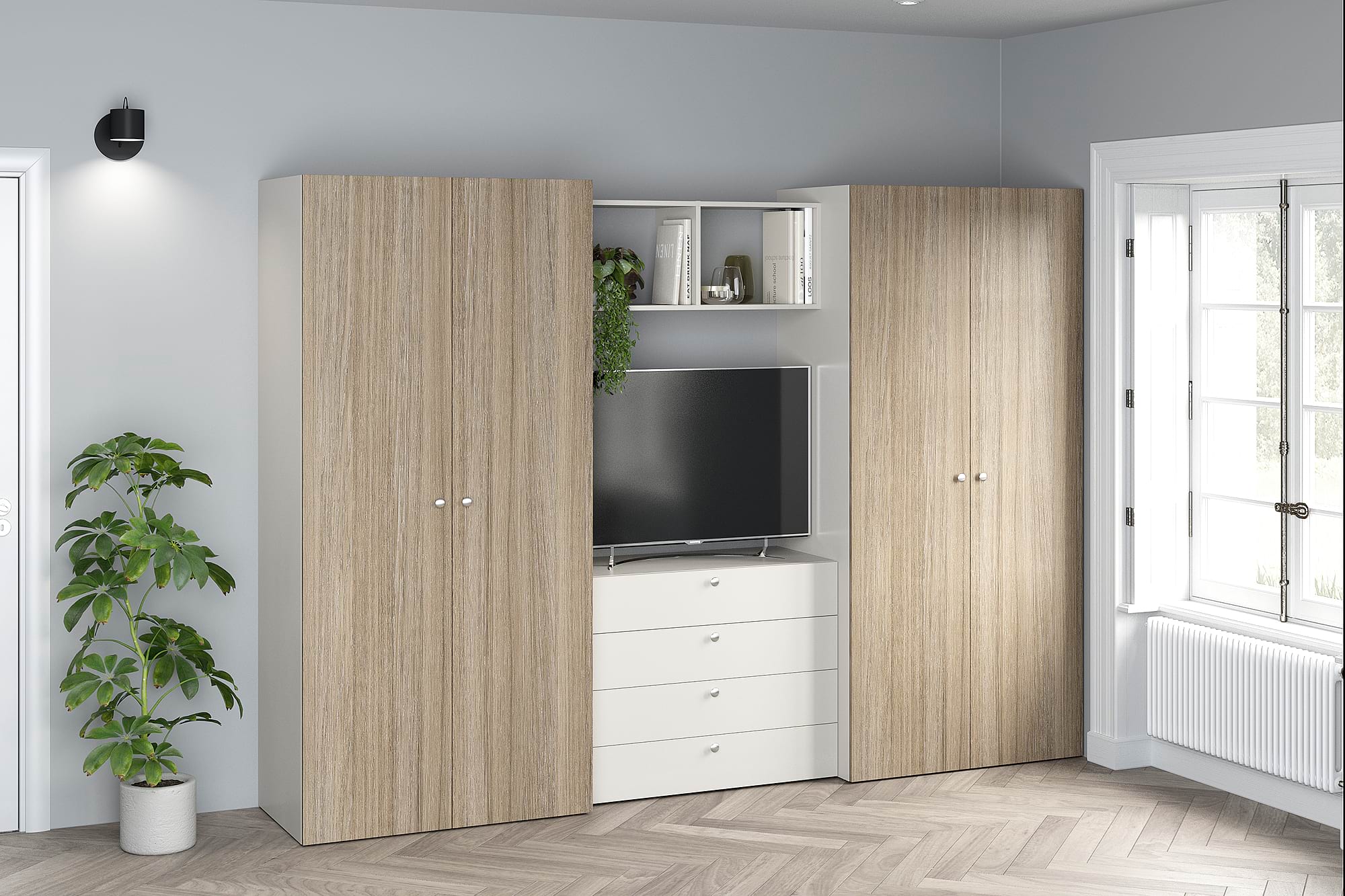 Dressing de dormitor ARONA A 270, A50, H195, 4U4S, Alb Poretlan, Oak parte din colecția modulară ARONA, este un ansamblu de mobilier ce îmbină funcționalitatea cu un design modern.