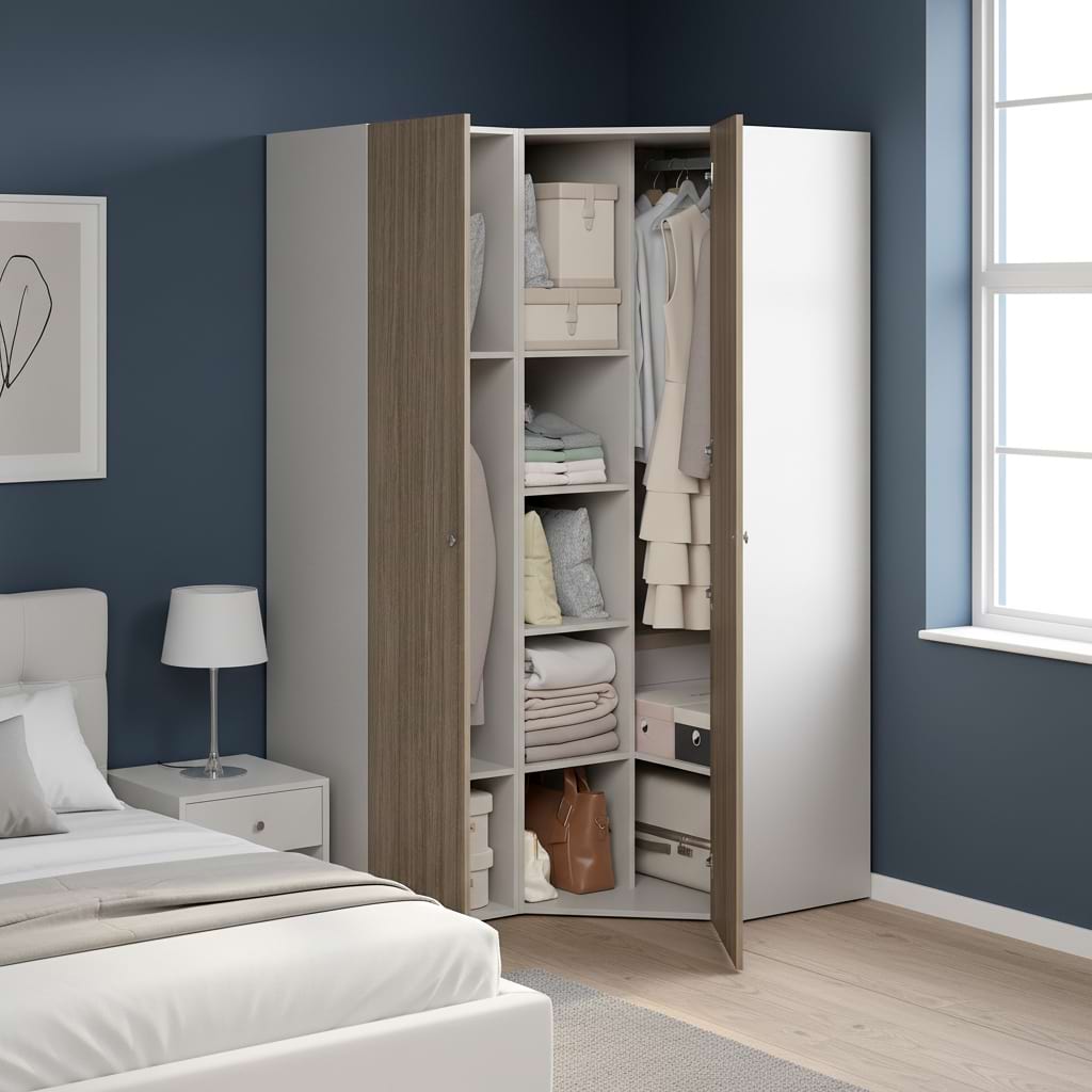 • Dulap colt ARONA 84, A50, H195, cu 1 usa, prevăzut cu polițe și bară pentru umerașe.