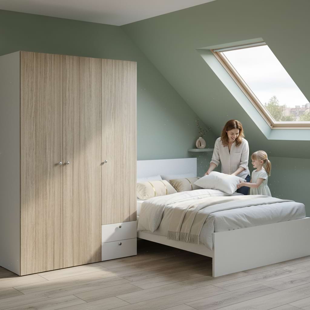 Tamos/DULAPURI/Dulap haine ARONA 135, A50, H195, 3U2S, Alb Portelan, Oak