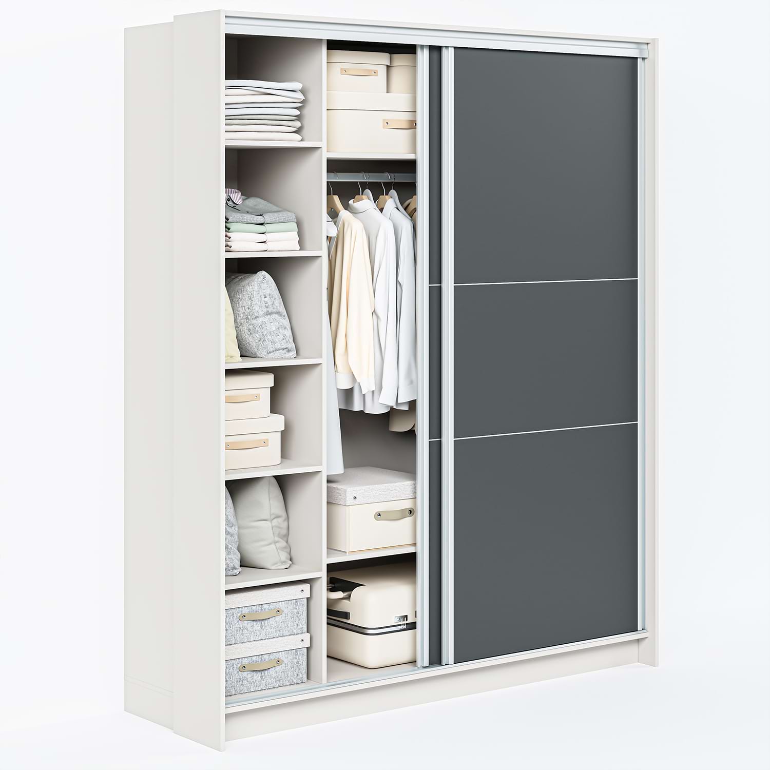 Dulapul cu uși glisante ARONA de lungime 185cm, adancime 60cm si inaltime 225cm, în combinatia Alb Porțelan cu usi Antracit, este proiectat pentru cei care caută un echilibru perfect între design modern, funcționalitate și economie de spațiu. Sistemul de uși culisante permite acces facil la interior fără a necesita spațiu suplimentar pentru deschidere, transformând dulapul într-o opțiune ideală pentru camere compacte sau interioare minimaliste.